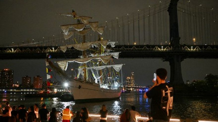 Centenares de espectadores habían despedido minutos antes con aplausos y vivas a México al barco -que había estado atracado en un muelle del sur de Manhattan desde el martes- antes de deslizarse por el East River con dirección a Brooklyn con las velas recogidas y decenas de marinos en las jarcias profusamente iluminadas.