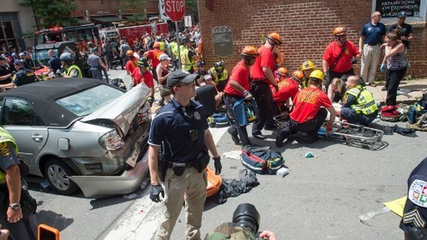 Una foto de Fields tomada durante la marcha del sábado le mostraba luciendo símbolos atribuidos a una organización de derecha racista, según el Southern Poverty Law Center, que monitorea a los grupos discriminitarios en Estados Unidos.