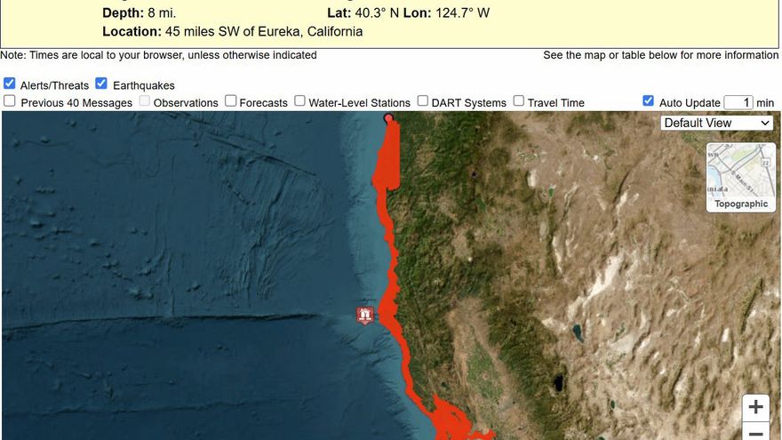 La alerta de tsunami fue emitida desde Davenport, en el norte de California, hasta la localidad de Douglas, en el sur de Oregón.