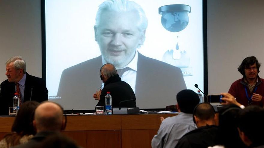 Assange, cuya aparición prevista en el balcón de esta embajada fue anulada por motivos de seguridad, también afirmó que se publicarían informaciones sobre "la guerra, las armas, el petróleo, Google y la vigilancia masiva", y que su difusión empezará "esta semana".