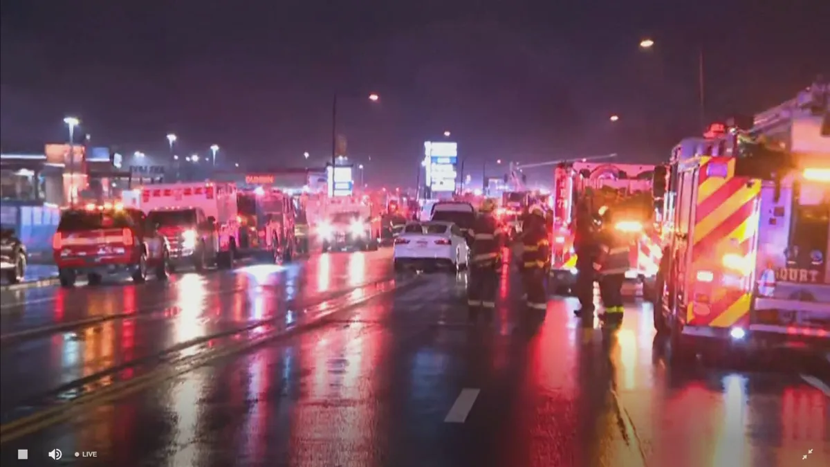 Decenas de trabajadores de emergencia se encontraban en el lugar de los hechos en el exterior del Roosevelt Mall, un centro comercial del noreste de Filadelfia con tiendas y establecimientos de alimentación.