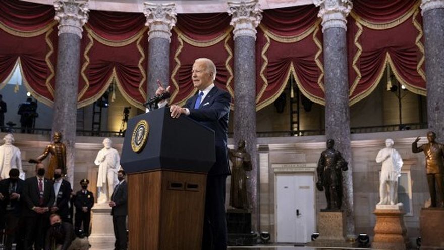 El presidente acusó a su predecesor de haber "tratado de evitar el traspaso de poder pacífico" durante la "insurrección armada" del 6 de enero de 2021.