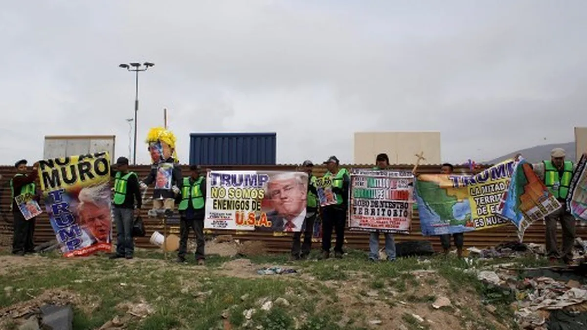 "No pagaremos tu muro" y "no somos enemigos de USA", se leía en algunas de las grandes pancartas que colocaron sobre la valla ya existente.