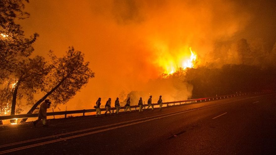 "La severa sequía y el clima extremo" convirtieron a toda California "en un polvorín", dijo el gobernador en un comunicado, antes de anunciar la muerte de Dave Ruhl, un bombero de 38 años llegado desde el norteño estado de Dakota del Sur para combatir el fuego en el bosque nacional de Modoc, en el noroeste de California.