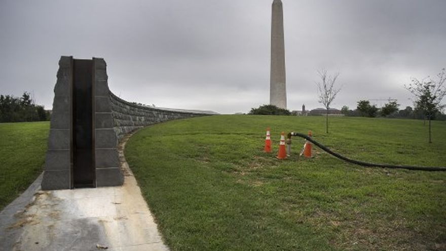 La barrera se encuentra en el National Mall, el famoso tramo cubierto de hierba entre el Lincoln Memorial y el Capitolio de Estados Unidos, y en los próximos días podría ponerse a prueba ante posibles inundaciones catastróficas.