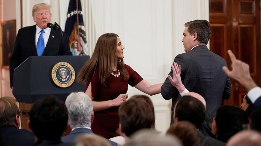 "Trump cree en la libertad de prensa y espera preguntas difíciles sobre él y su Gobierno. Sin embargo, nunca toleraremos que un periodista ponga sus manos sobre una joven mujer que solo está tratando de hacer su trabajo como becaria de la Casa Blanca. Este comportamiento es inaceptable", dijo Sanders en el comunicado.