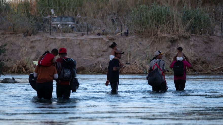 Migrantes cruzando por el Río Grande localizado en el estado de Texas