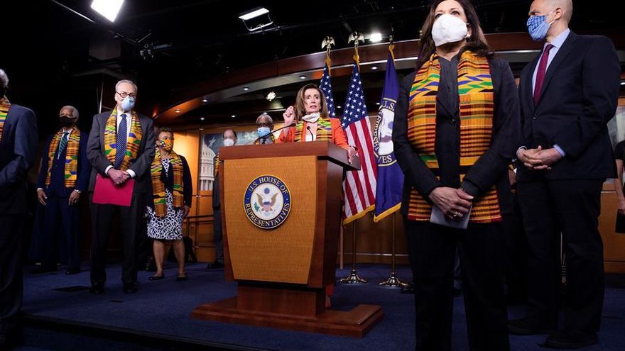 "El martirio de George Floyd ha generado un cambio en el mundo", aseguró Pelosi, quien prometió que se asegurará de que la Cámara de Representantes, controlada por los demócratas, apruebe cuanto antes el proyecto.