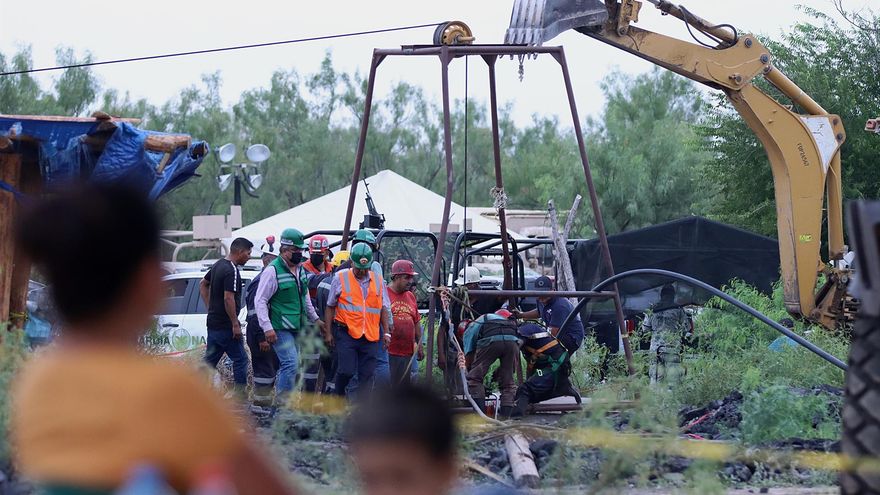 Según explicó la titular de Protección Civil, Laura Velázquez, se evalúan tres "opciones" para el rescate, una de las cuales consiste en abrir un túnel con "rampas de acceso inclinado" para alcanzar las galerías de la mina, además del bombeo de agua.