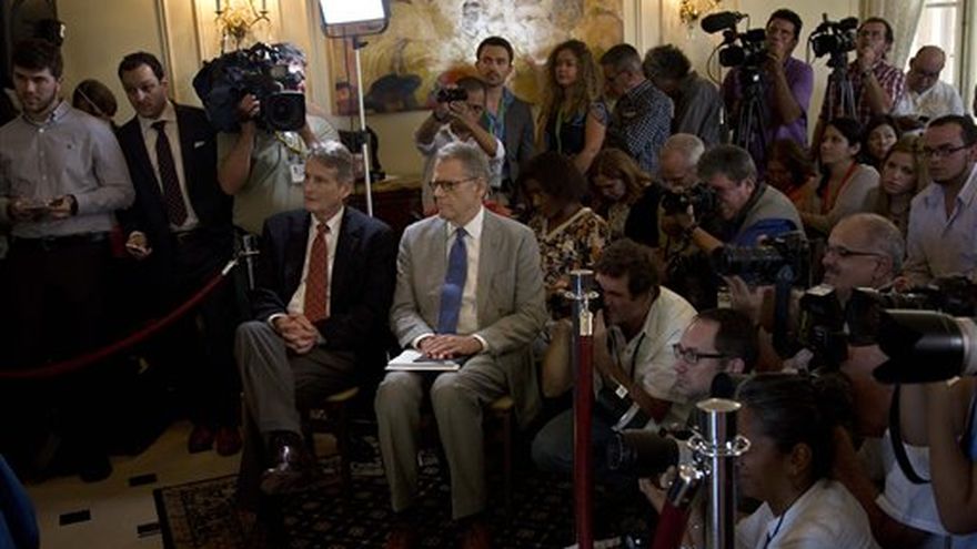 El miércoles, DeLaurentis entregó personalmente una carta de la Casa Blanca al Ministerio de Relaciones Exteriores en La Habana acerca de la reapertura de las embajadas en las respectivas capitales. Sus respectivas misiones diplomáticas, llamadas secciones de intereses, serán convertidas en embajadas a partir del 20 de julio, aunque el Departamento de Estado norteamericano dijo que aún no tiene una fecha para una ceremonia formal.