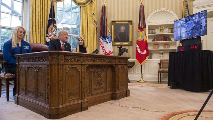 Desde el Despacho Oval, sentado junto a su hija Ivanka y la astronauta Kate Rubins, Trump dio la enhorabuena a Whitson "en nombre de toda la nación" por su "increíble récord".