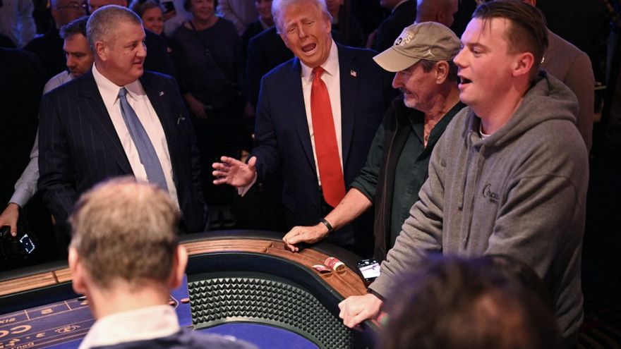 Se presentó en Las Vegas, la capital del juego, horas después de un dramático despido nocturno de supervisores de agencias federales, y de una estrecha victoria en la confirmación de su secretario de Defensa.