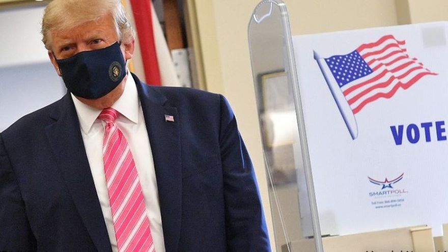 Al emitir el voto, Trump usó una mascarilla, algo que rara vez suele hacer el mandatario que ha minimizado al virus desde el inicio de la crisis sanitaria e incluso se ha contagiado.