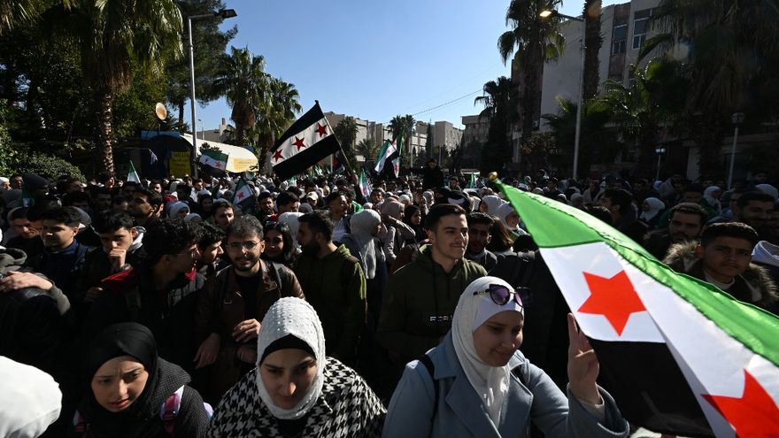 El jueves, cientos de personas se manifestaron en Damasco por la democracia y los derechos de las mujeres.