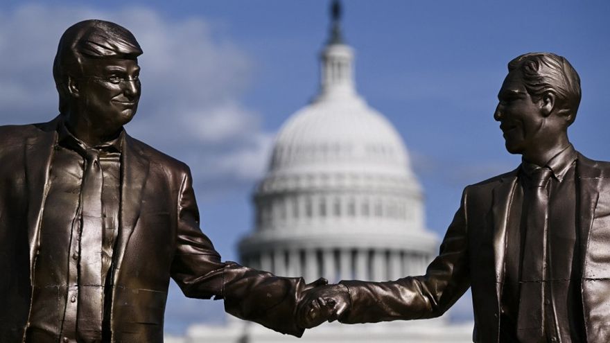 La obra pintada en bronce, originalmente titulada "Mejores amigos para siempre", pero rebautizada como "¿Por qué no podemos ser amigos?", fue reinstalada el jueves en el National Mall, a pocos pasos del edificio que alberga el Congreso.