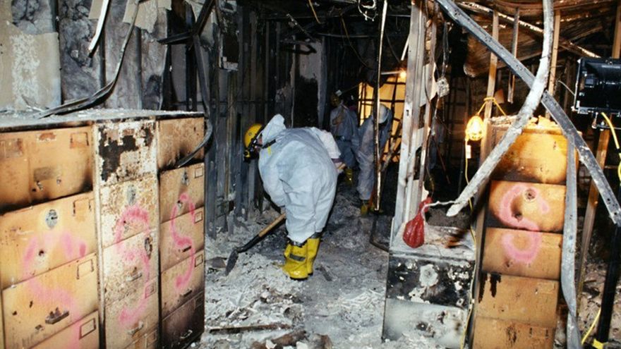 La Policía Federal estadounidense publicó 27 fotos inéditas que muestran las consecuencias inmediatas del atentado del 11 de septiembre de 2001 contra el Pentágono, en particular el incendio y la devastación causados por el choque del avión desviado por Al Qaida.