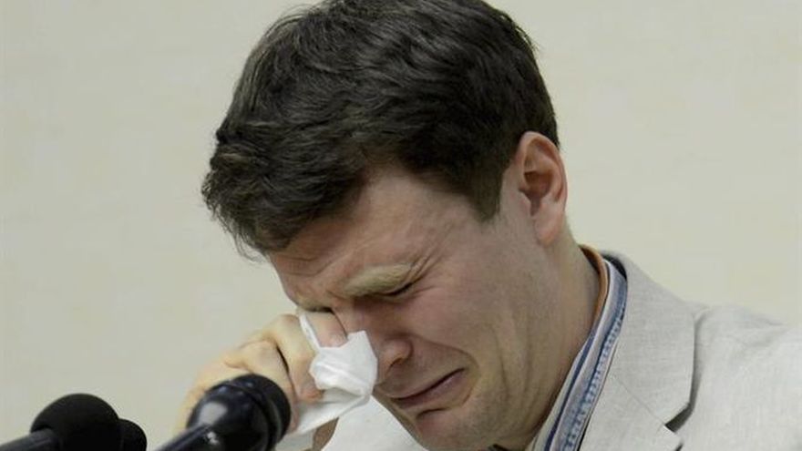 Warmbier, de 22 años, fue arrestado en Corea del Norte mientras visitaba el país como turista; y fue condenado a 15 años de trabajos forzados por intentar robar un cartel de propaganda política del hotel en el que se hospedaba en Pyongyang, lo que el Gobierno norcoreano consideró un "acto hostil" contra el Estado.