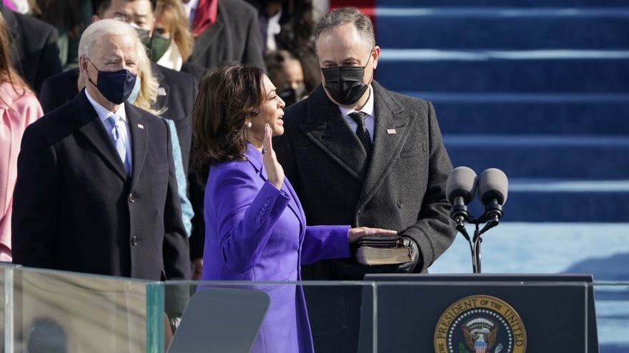 La que hasta ahora había sido senadora por California y que el lunes renunció a ese cargo juró el puesto de vicepresidenta poco antes de que Joe Biden haga lo mismo como presidente, frente al jefe del Tribunal Supremo, el juez conservador John Roberts.