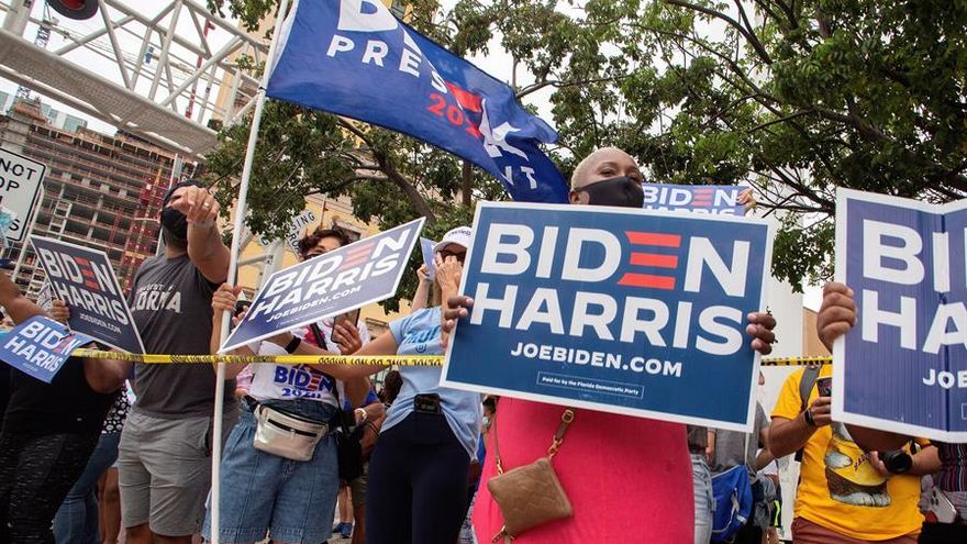 Hispanos del sur de Florida (EE.UU.) se congregaron este sábado en Miami para festejar a ritmo de salsa el triunfo del candidato demócrata, Joe Biden, después de varios días de angustia tras saber que el estado le dio al presidente Donald Trump sus valiosos 29 votos en el Colegio Electoral.
