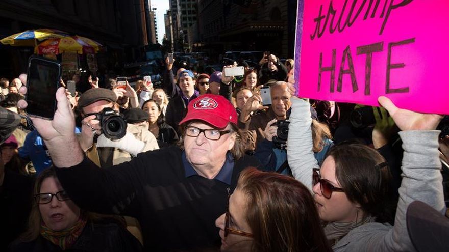 El cineasta Michael Moore entró hoy en el edificio Trump Tower de Manhattan para intentar hablar con el presidente electo, Donald Trump, pero los servicios secretos le impidieron subir hasta las oficinas del magnate neoyorquino.
