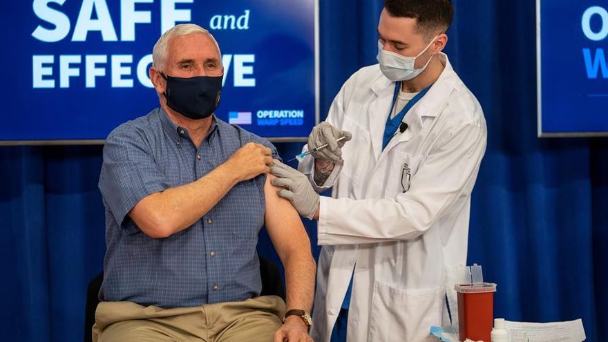 El vicepresidente saliente de EE.UU., Mike Pence, se convirtió este viernes en el responsable gubernamental estadounidense de mayor rango que recibe la vacuna de la COVID-19, mientras el presidente Donald Trump sigue sin aclarar si se la pondrá y cuándo.