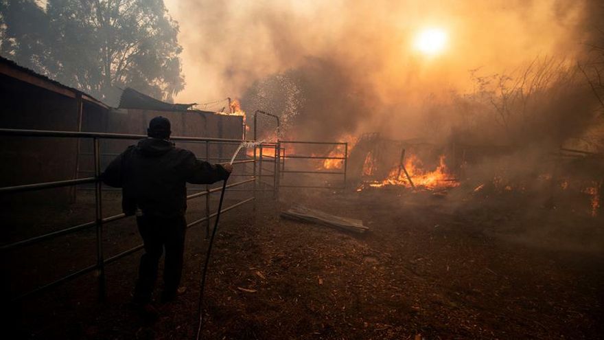 Los vientos de hasta 112 kilómetros por hora que azotan California (EE.UU.) y que han sido considerados como los más fuertes de los últimos años amenazan este miércoles con empeorar los incendios que azotan de norte a sur el estado y que han dejado cientos de miles de evacuados.