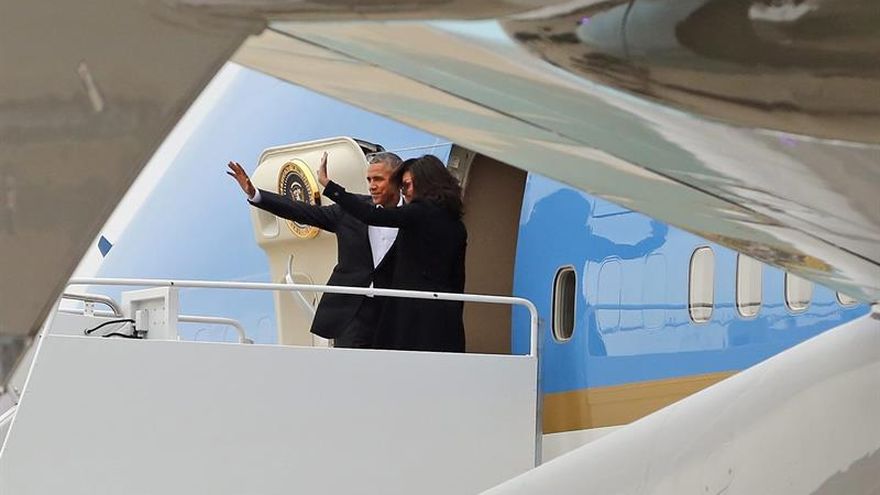 Junto a Obama y su familia viajan la líder de la minoría demócrata en la Cámara de Representantes, Nancy Pelosi, los senadores demócratas Patrick Leahy y Dick Durbin y el republicano Jeff Flake, mientras que una delegación más amplia de líderes políticos y empresariales viaja separadamente.