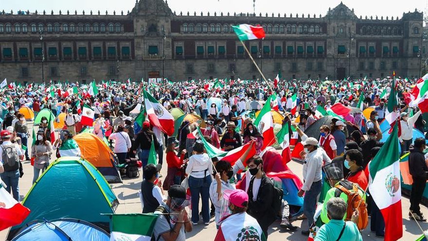 Unos 5,000 opositores del presidente de México, Andrés Manuel López Obrador, marcharon este sábado y lograron extender su protesta a toda la explanada del Zócalo de la capital mexicana.