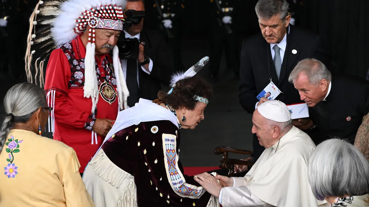 En el centro de este "peregrinaje penitencial" está el doloroso capítulo de las "escuelas residenciales" para niños indígenas, un sistema de asimilación cultural que causó la muerte de al menos 6.000 menores por enfermedad, desnutrición, negligencia o abusos desde finales del siglo XIX hasta la década de 1990, y que creó un traumatismo en varias generaciones.