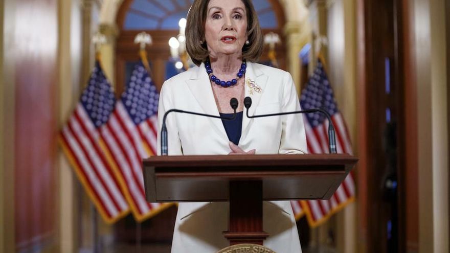 "Tristemente, pero con confianza y humildad, con lealtad a nuestros fundadores y el corazón lleno de amor por Estados Unidos, hoy le pido al presidente (del Comité Judicial de la Cámara de Representantes, Jerry Nadler) que proceda con la redacción de los artículos de juicio político", dijo la líder de los demócratas en el Congreso en una breve y sombría declaración televisada.