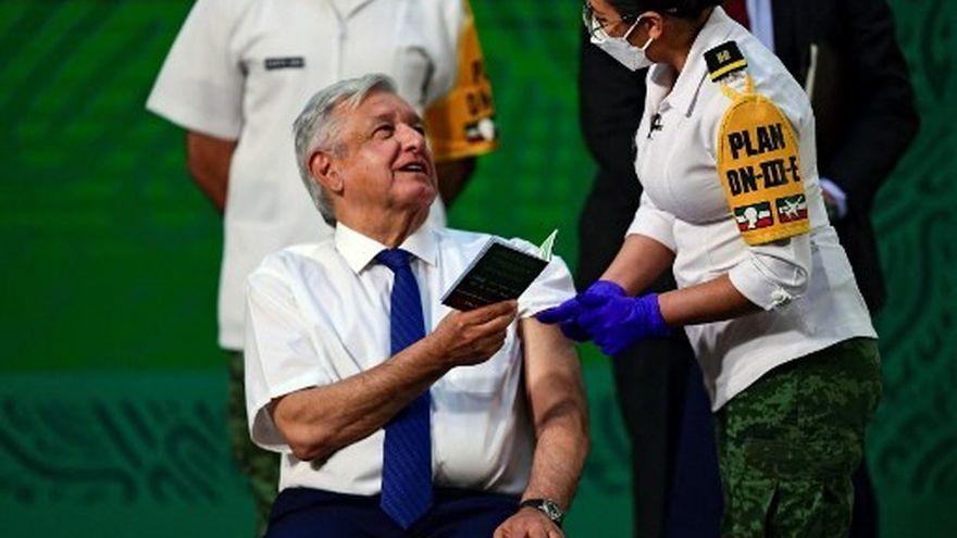 El presidente de México, Andrés Manuel López Obrador, recibió este martes la primera dosis de la vacuna contra el covid-19 en un acto público que busca convencer a los adultos mayores del país reacios a inmunizarse.