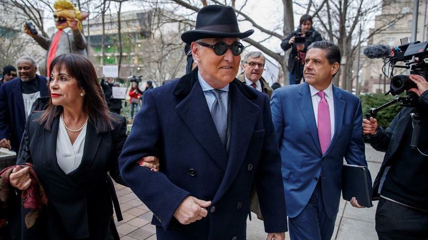 Roger Stone, un estrecho excolaborador del presidente de EE.UU., Donald Trump, fue condenado este jueves a 40 meses (tres años y cuatro meses) de prisión, tras haber sido declarado culpable de siete cargos relacionados con la llamada trama rusa, en un caso en el que el mandatario ha presionado a favor de su exasesor.