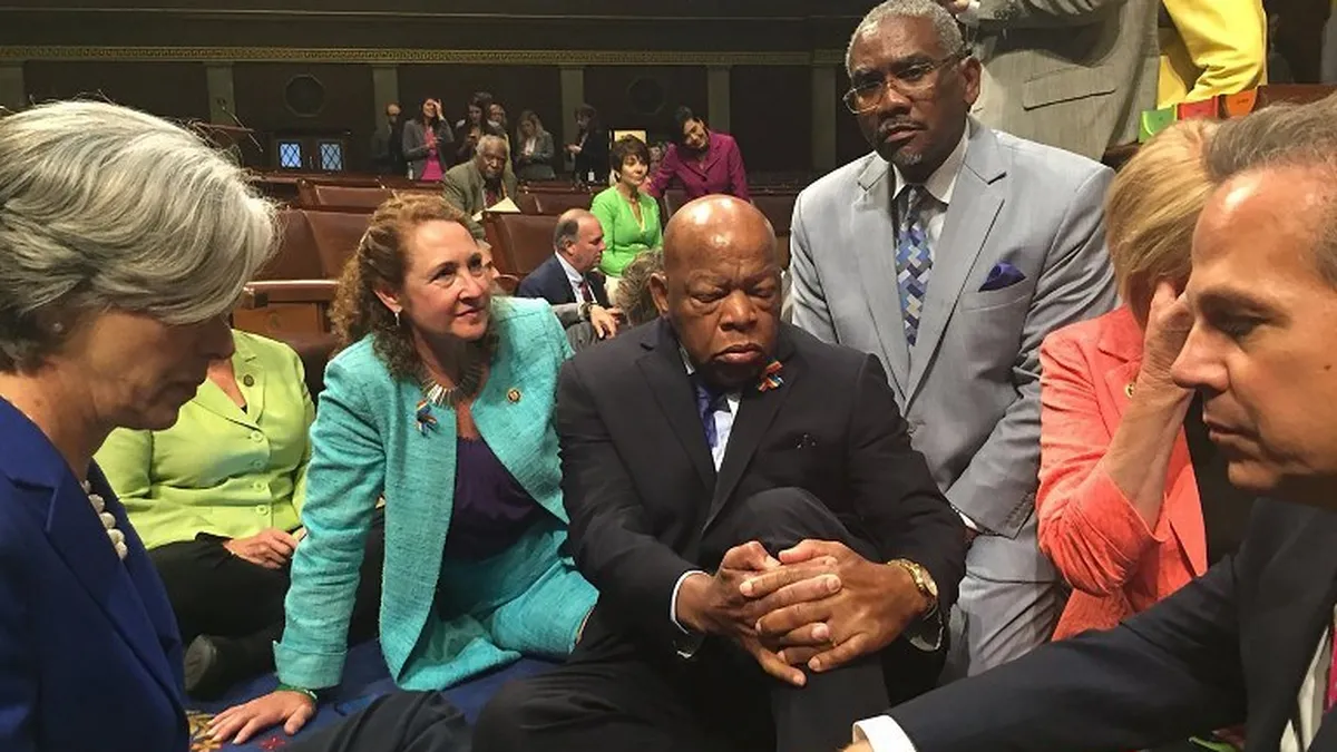 El congresista John Lewis lideró esta ocupación simbólica y lanzó un discurso en el que aseveró que "los estadounidenses quieren que hagamos algo para frenar el problema de la violencia de las armas. No podemos esperar más".
