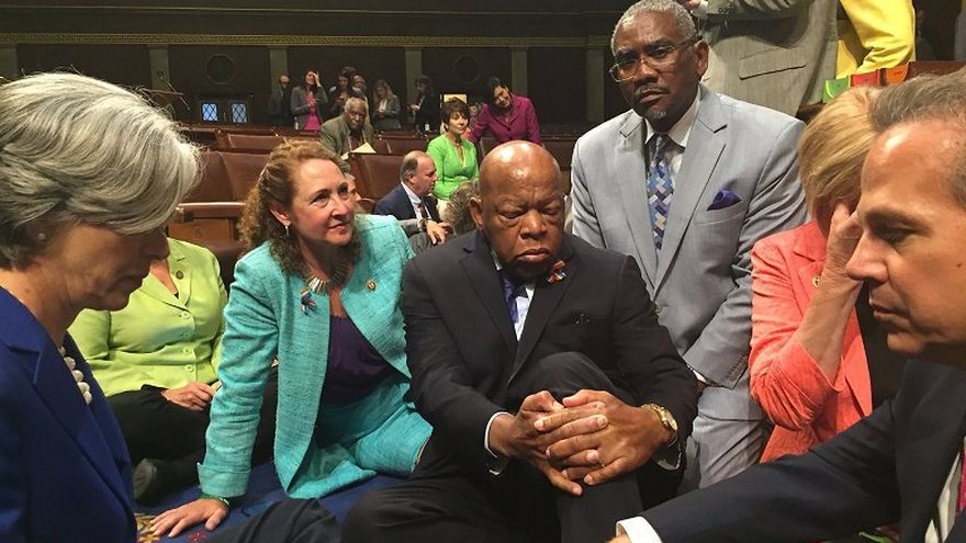 El congresista John Lewis lideró esta ocupación simbólica y lanzó un discurso en el que aseveró que "los estadounidenses quieren que hagamos algo para frenar el problema de la violencia de las armas. No podemos esperar más".