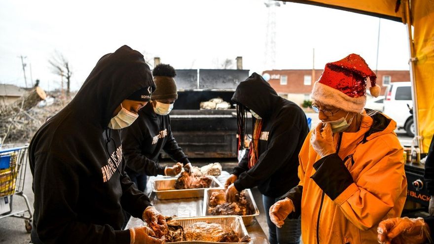 AFP/Comida, bebidas calientes y pronto regalos: una cadena de solidaridad aliviaba la tristeza este viernes de Nochebuena en Mayfield, una localidad estadounidense de Kentucky devastada hace dos semanas por un tornado que causó decenas de muertos.