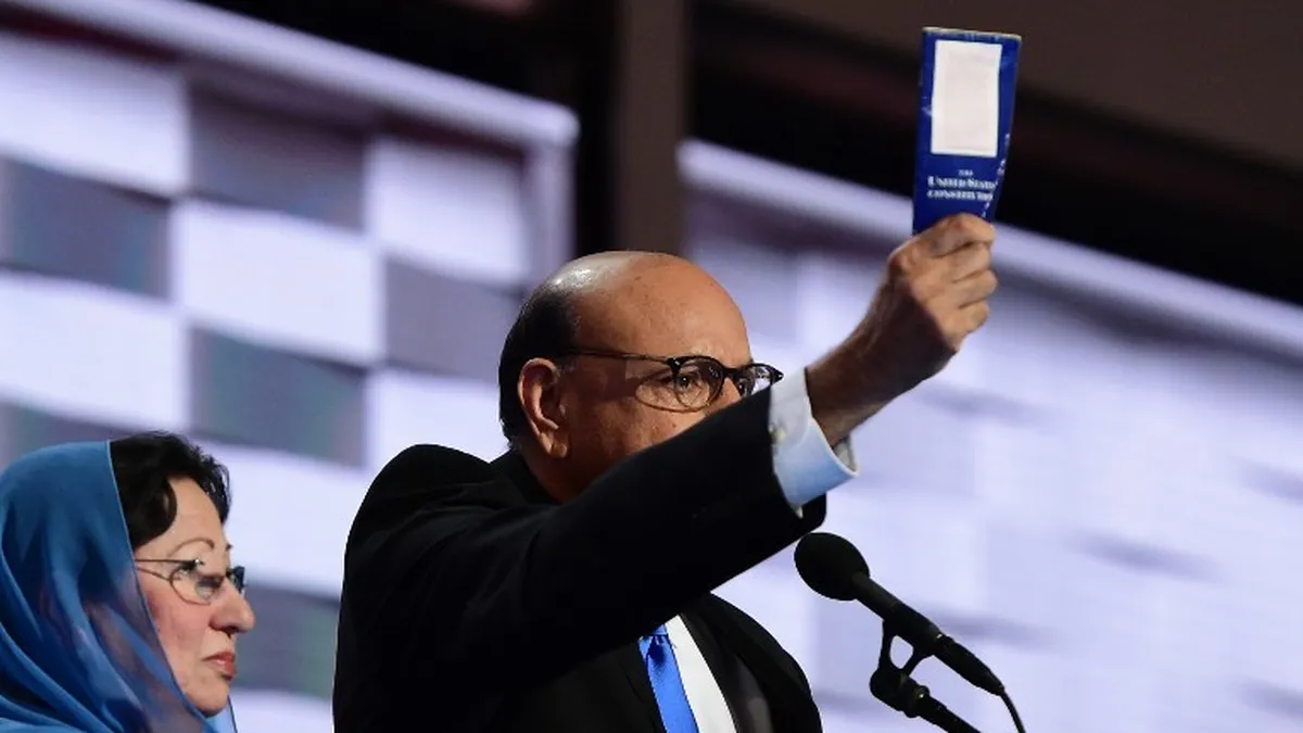 Khizr Khan, un abogado educado en Harvard cuyo hijo murió en un ataque con bomba en Irak, desafió al candidato republicano a la Casa Blanca y criticó sus declaraciones anti-musulmanas y contra los inmigrantes, sacudiendo un ejemplar de la constitución.