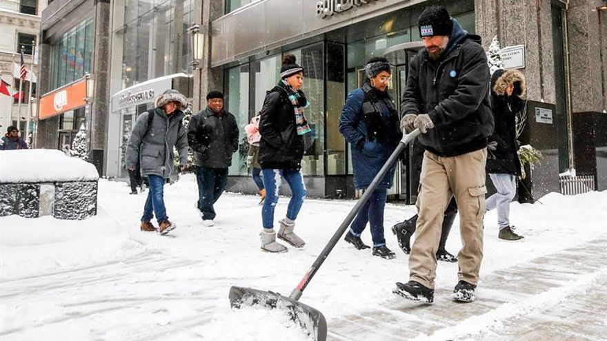 Más de 1,500 vuelos fueron cancelados en los aeropuertos de Chicago y Detroit, al menos la mitad en el de O'Hare, donde se acumulaban 18 centímetros de nieve.