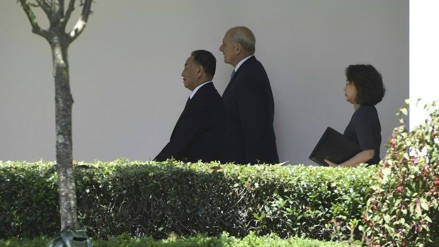 Kim Yong-chol fue recibido por John Kelly, el jefe de gabinete de la Casa Blanca, antes de entrar a la residencia presidencial.