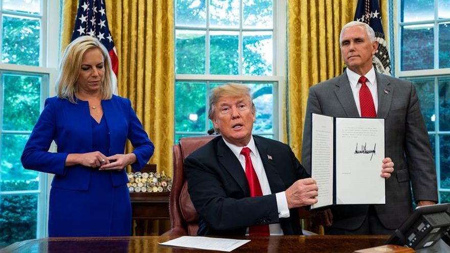 Trump rubricó un documento que permitirá que los niños que cruzan la frontera sur junto a sus padres se queden con ellos en centros de detención de inmigrantes durante un plazo de tiempo dilatado, según explicó a Efe una fuente de la Casa Blanca.