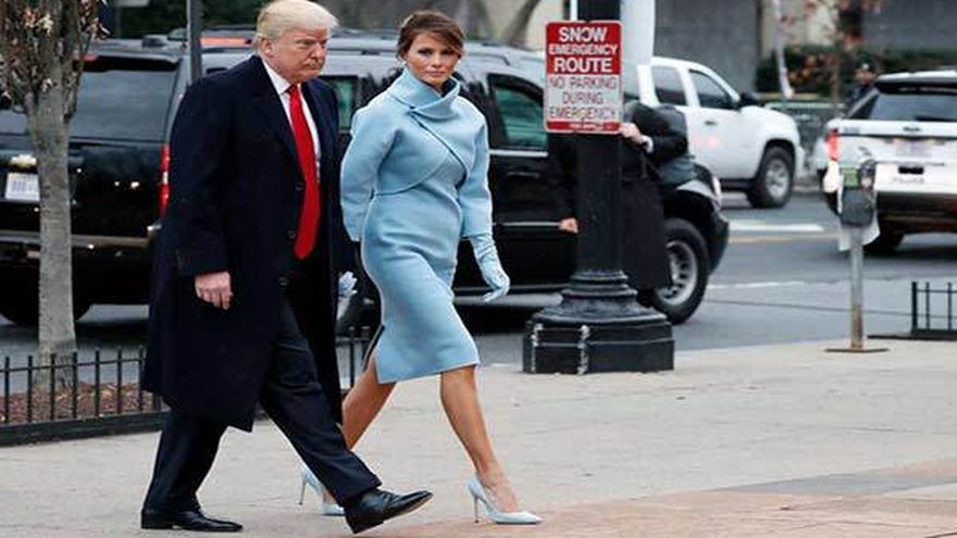 El presidente, vestido de traje oscuro y corbata roja, llegó a Bethesda-by-the-Sea de la mano de Melania, quien llevaba un vestido sin mangas hasta la pantorrillas y con estampado rojo-rosado, y ambos se sentaron en la tercera fila del lado derecho, informó el pool de periodistas.