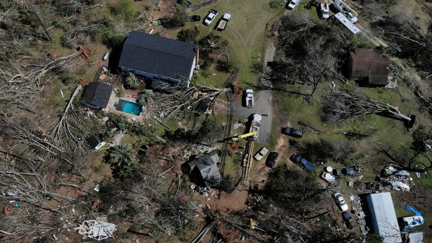 De acuerdo con el Servicio Nacional Meteorológico, una decena de tornados tocaron tierra en la tarde del domingo en los estados de Alabama y Georgia, con vientos de entre 215 y 265 kilómetros por hora.
