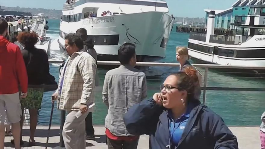 Turistas vivieron momentos de angustia cuando un pequeño crucero se estrelló contra el muelle de Broadway en San Diego (Estados Unidos), la tarde del jueves 31 de marzo.