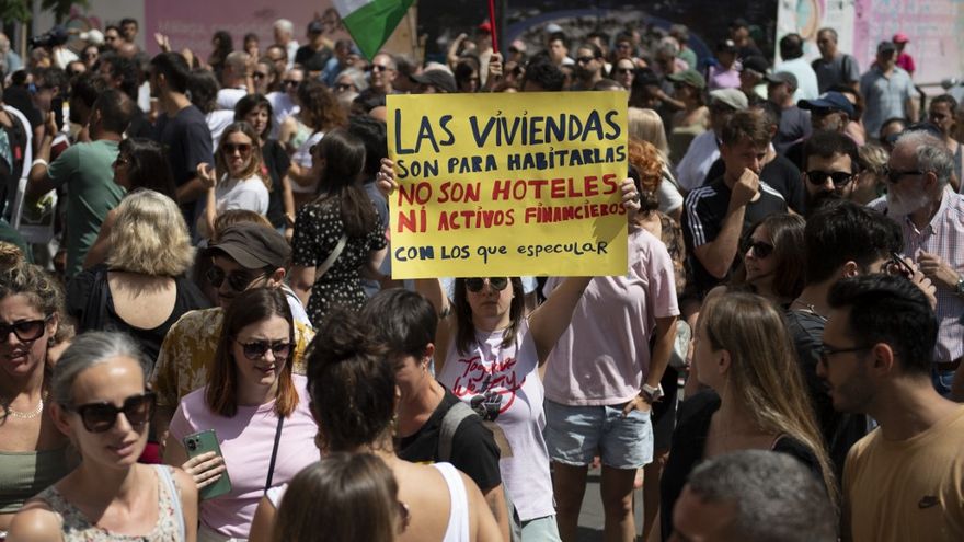 "La ciudad se ha convertido en un parque de atracciones", explicó a la AFP Quique, un manifestante de 26 años, lamentando que "las viviendas turísticas han sustituido de manera irregular a las viviendas habituales".