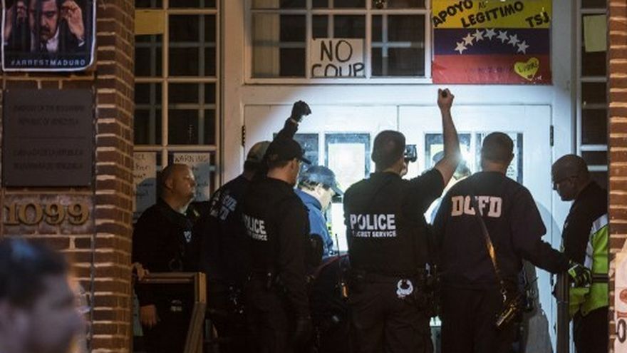 La policía dio inicio este lunes a un operativo para desalojar la embajada de Venezuela en Washington, tomada desde hace varias semanas por activistas estadounidenses que se oponen a la entrada de la delegación del líder opositor Juan Guaidó.