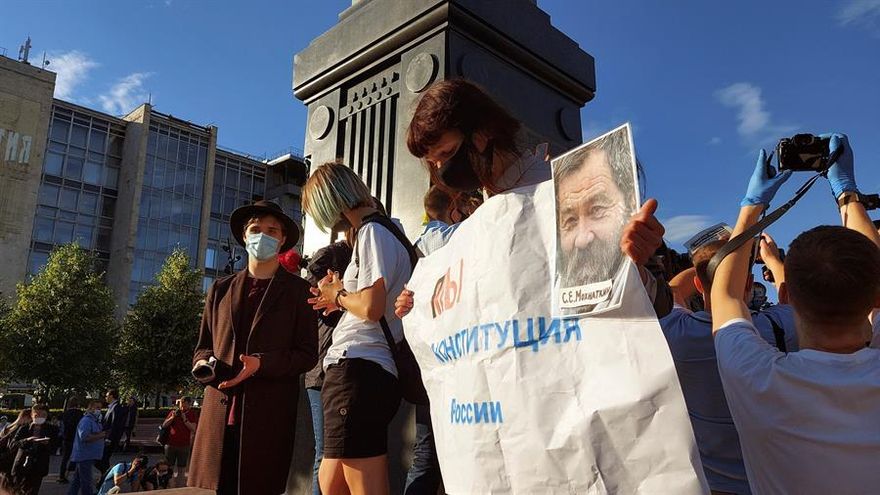 La oposición rusa protestó hoy en Moscú contra el plebiscito constitucional del presidente, Vladímir Putin, que, entre otras cosas, le permitiría permanecer en el Kremlin más allá de 2024, cuando expira su actual mandato.