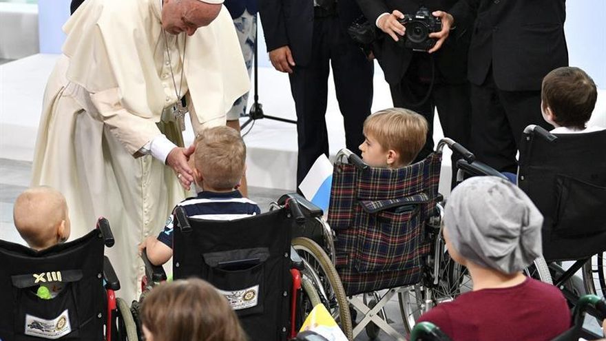 El papa Francisco visitó hoy el hospital pediátrico de Prokocim, en Cracovia, y afirmó que le gustaría "poder estar un poco cerca de cada niño enfermo, junto a su cama, y abrazarlos uno a uno".
