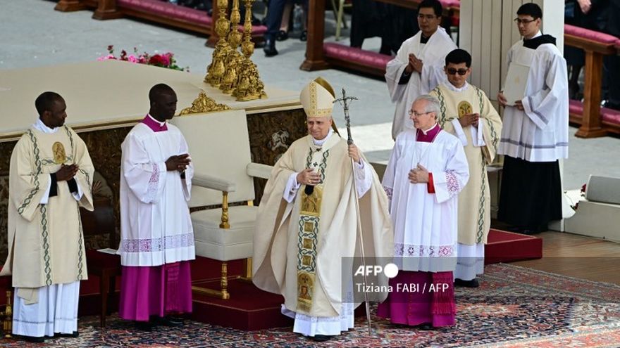 Durante una misa rica en ritos y símbolos, custodiada por un importante dispositivo de seguridad, León XIV recibió los emblemas papales: el palio, una prenda que pende de los hombros y luce sobre la casulla, y el anillo del pescador, que se forja de manera especial para cada pontífice y debe ser destruido a la muerte del mismo.