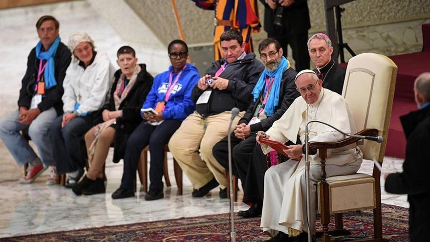 En su alocución, Francisco reiteró así el llamamiento que realizó al inicio de su pontificado para que "los católicos formen una Iglesia pobre y para los pobres" y agregó que todas la religiones tienen que colocar "a los pobres en el mensaje de Dios".