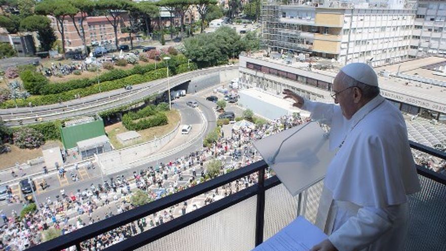 Francisco, de 84 años, compareció el domingo desde el balcón en el décimo piso del hospital para el rezo del Ángelus con la voz un tanto ronca, pero contento por cumplir con el tradicional rito.