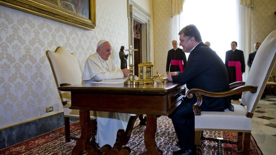 El papa Francisco recibió este viernes en el Vaticano al presidente de Ucrania, Petro Poroshenko, al que invitó a "encontrar soluciones políticas" al conflicto que azota el este de su país.